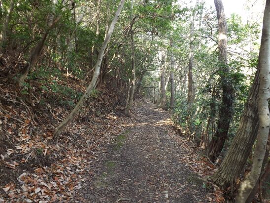 分岐を右に折れて200m程気持ち良い道を進む この辺りの標高400m余り
