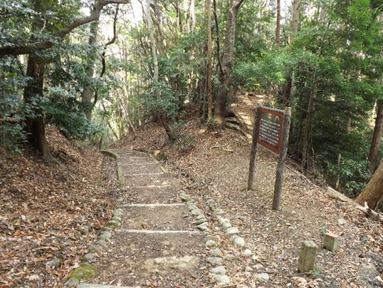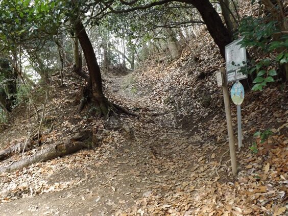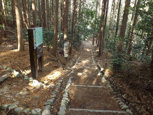 来た時の石段を上り参道との分岐点へ、分岐点を右へ 谷山尾根道 に入る