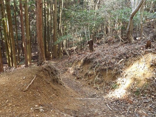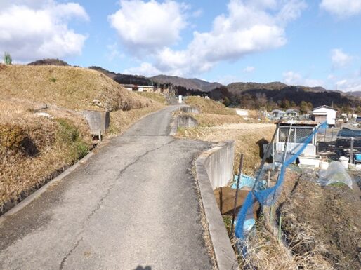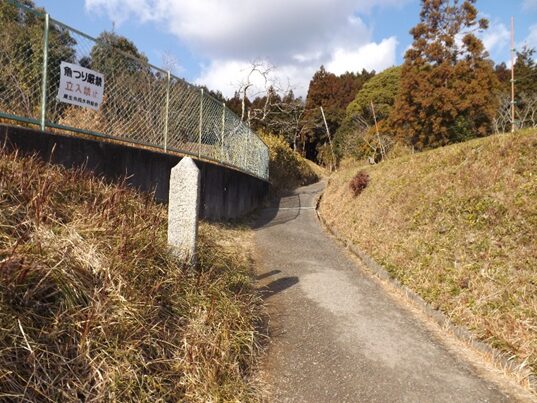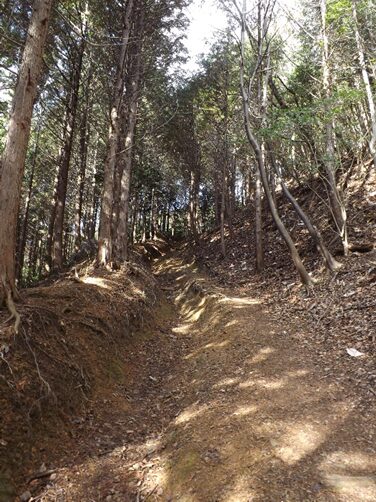 右に折れて150m程先で、左に上るわかりにくい道があります