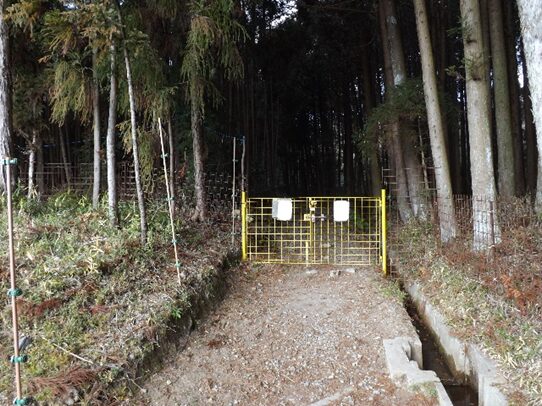 池を過ぎるといよいよ山道に差し掛かる、獣除けの柵を開けて入る。柵は何時も緊張する瞬間です