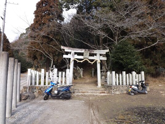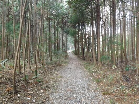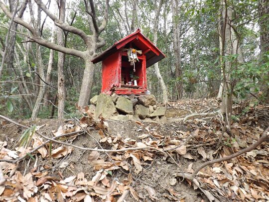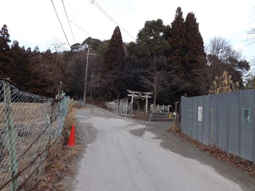 白姫大明神のところで林道と合流した辻を振り返る。向かって大明神の右側の森の中を降りてきた