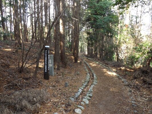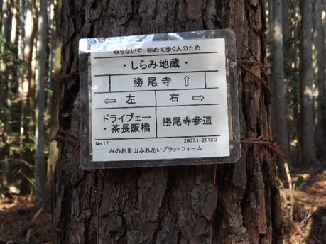 暫くして右下にくだる道を分けるが その辻に 道標 「右 かちおじ七丁」