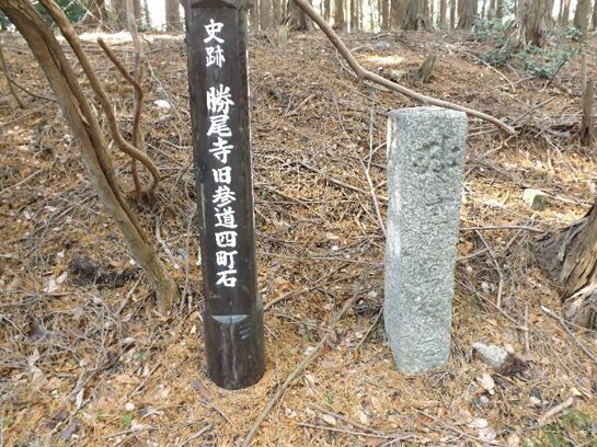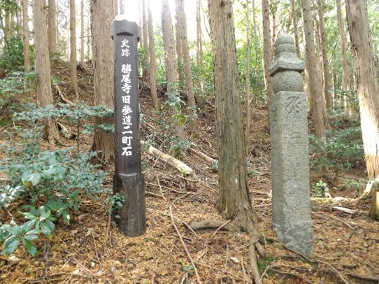 鳥居の左袂の 勝尾寺の三十六町石 現在1丁毎にあった三十六町石も20基ほどになっている