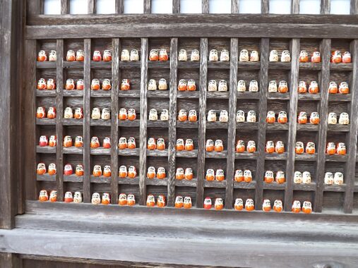 「勝ち運の寺」として有名。境内には桜、アジサイ、紅葉と四季折々の花が咲き、「勝ちダルマ」が至る所にあります