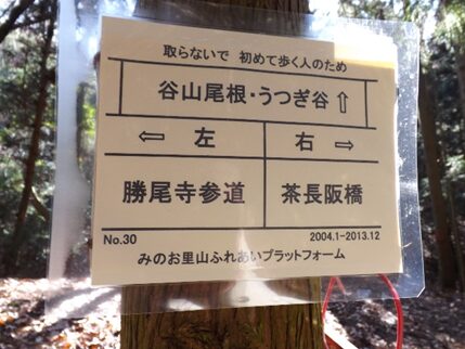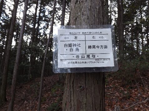 枝分かれの道が多く迷いますが、谷山尾根道の標識を頼りに下ります