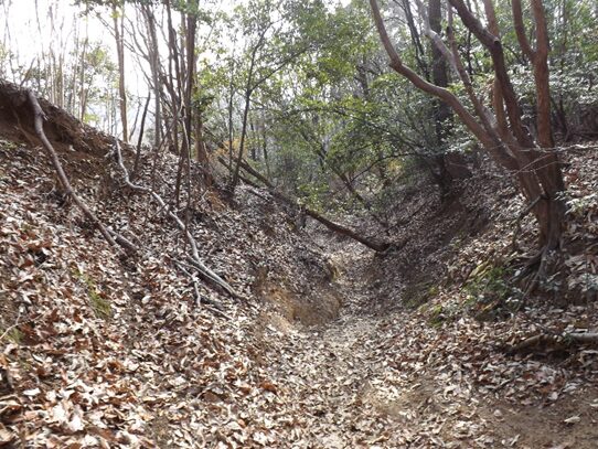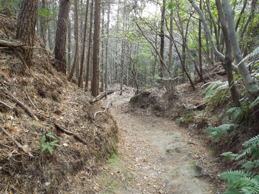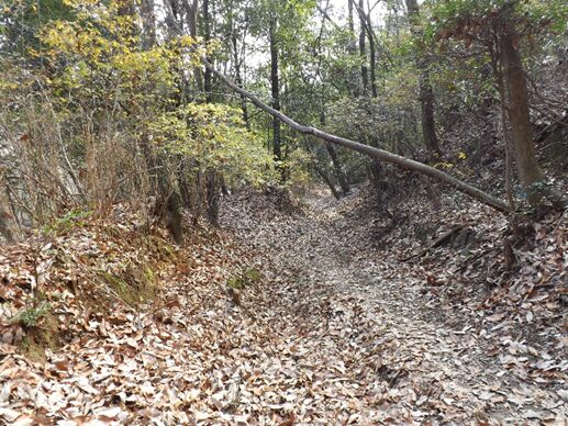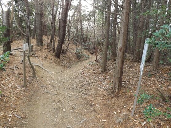 ここから帰り道で通る下り、谷山尾根道が左にウツギ谷からの道と合流