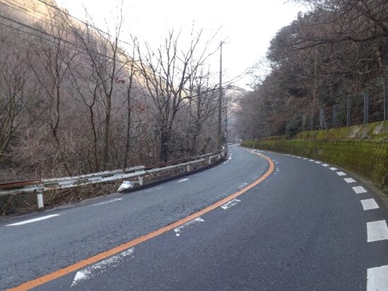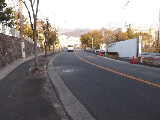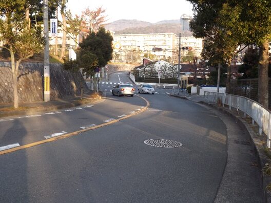 左に折れた坂道