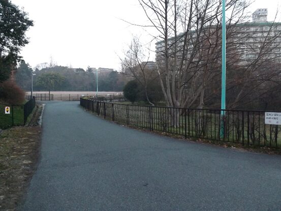 北千里駅寄り東への広い車道を進む、500m程行くと千里北公園に突当り、公園の中に入り、右に水連池をみて、公園を横断、公園東側の120号線の交差点に出る