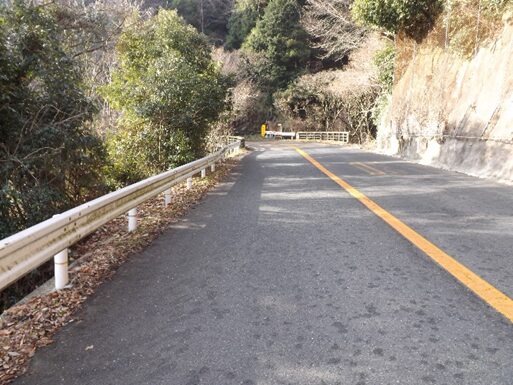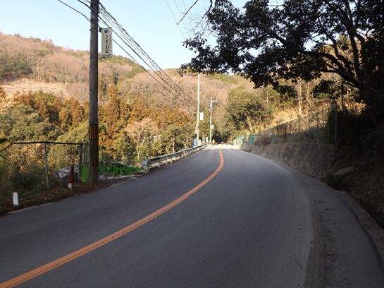 分岐で右への茨木能勢線と分かれ、左におれ勝尾寺川に架かる橋を渡り、Uターン、蛇行をしながら急な坂を上る