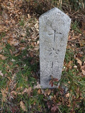 200m程進んだ右斜面に 南無阿弥陀仏の題目碑