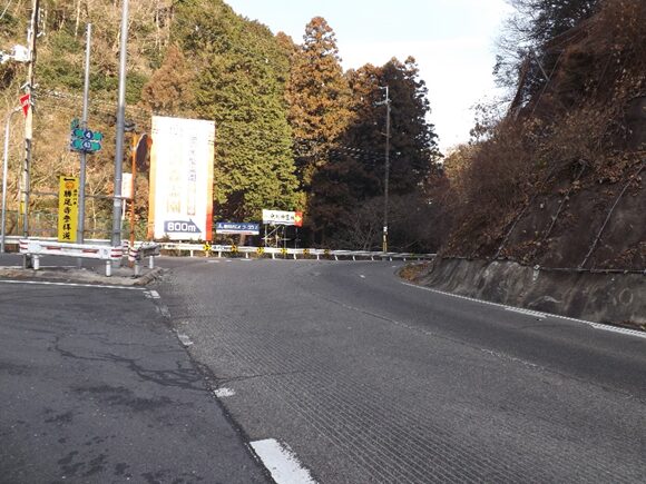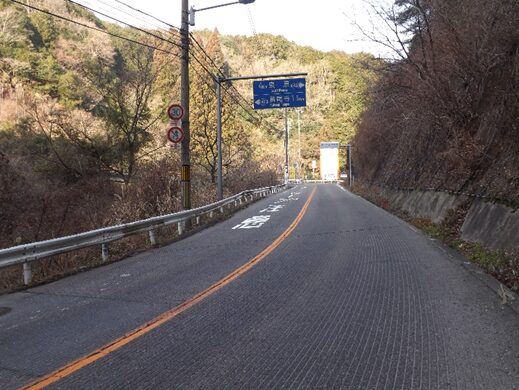 さらに500m程進むと信号のある辻で、道が分岐します左の道に大きくカーブして進む、栗生間谷西1丁目