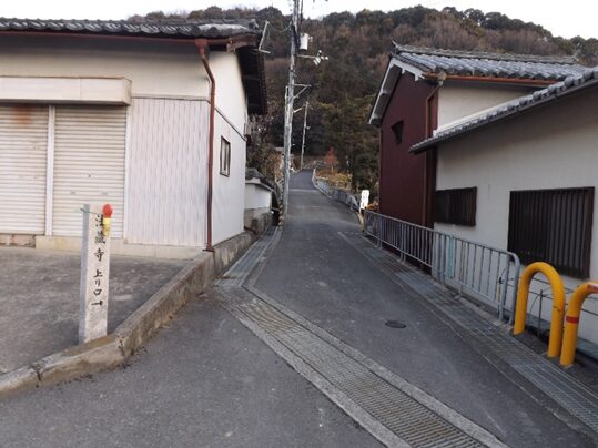 突当りの法蔵寺の前で左にカーブして坂を上る左に お堂