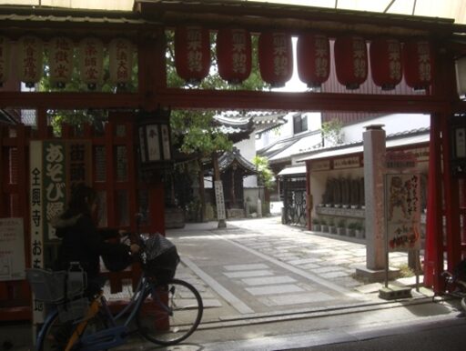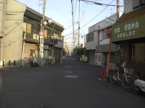 左に折れて186号線の南港通りに出て、平野公園東口交差点を越え、左に平野警察署を見て、左にキリン堂のある所で、右斜めの細い道に入る