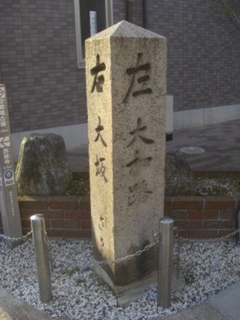 道標 かつての賑わいが偲ばれる。「右 大坂 左 大和路」