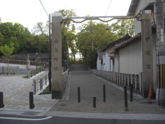 駅の南の竹内街道を東に進む左に 白鳥神社参道