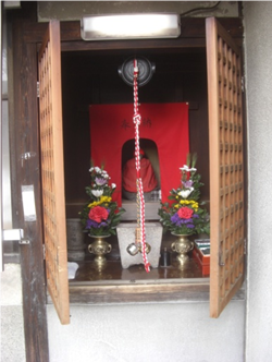 右に折れたすぐ左民家の軒に 祠