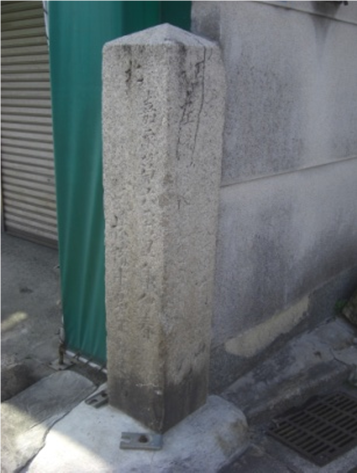 街道に戻り少し進むと、右の清久酒店の道向かいに 道標 「右 ・・・・大坂 左・・・・・・」