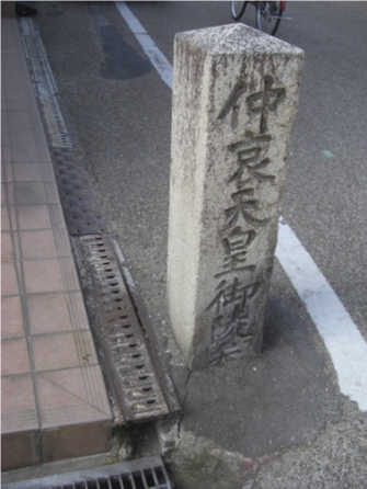 右に折れたすぐのところで、街道より左に入る道の奥に 仲哀天皇陵