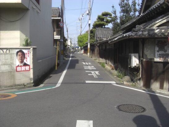 交差点の左に伸びる中高野街道の街筋