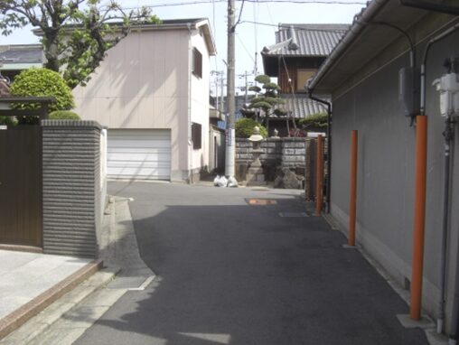 右に折れた角と旧道の筋