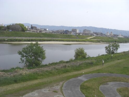堤を300mほど進むと、明治橋があるので渡り対岸に