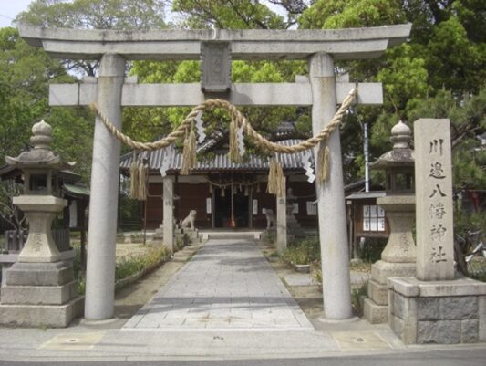 左奥に川辺八幡神社の鳥居