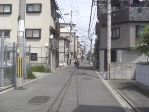 少し進んだところでT字路となり右に折れる。左はすぐ平野本町5の広い交差点