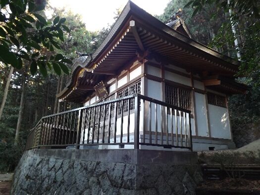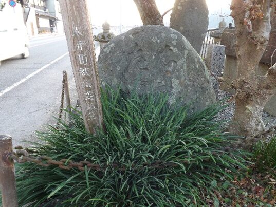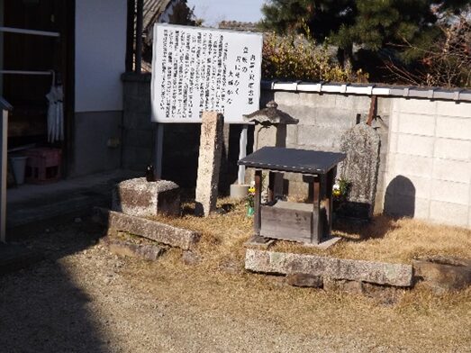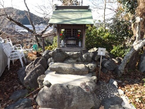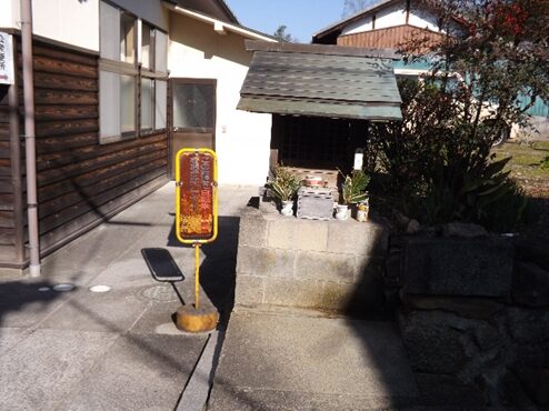 右へ進んでいくと新道に出た所の比曽川の側に 祠 が祀られている