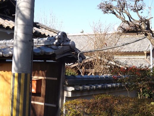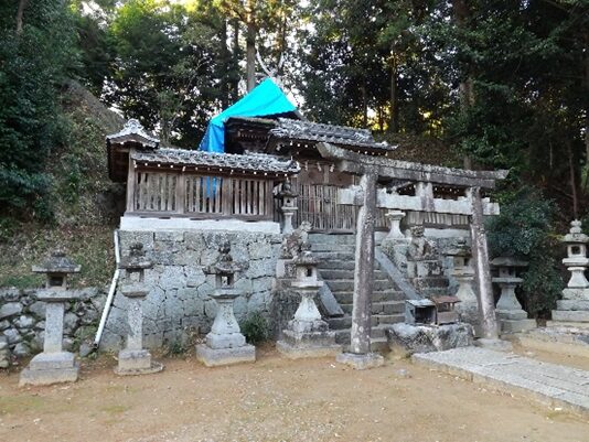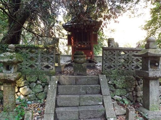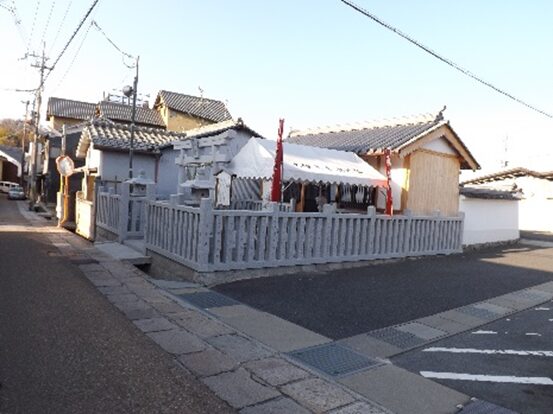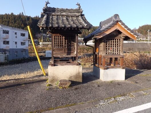 総合センターのすぐ先左に2つの 祠 本瓦の立派なもの
