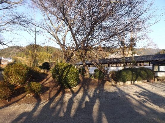 不老長寿の桜、太子御手植え之檀上桜寺伝によると、150年前台風により倒木、枯木化したが、やがて根元から、幹・枝、そして開花、みごとに蘇生し現在に至る