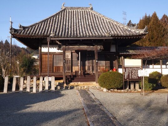 暫く歩くと、東西に走る寺前千股線の上比曽信号交差点に出るので、そこを渡り真っ直ぐ進むとすぐに 世尊寺の山門 に突き当たる
