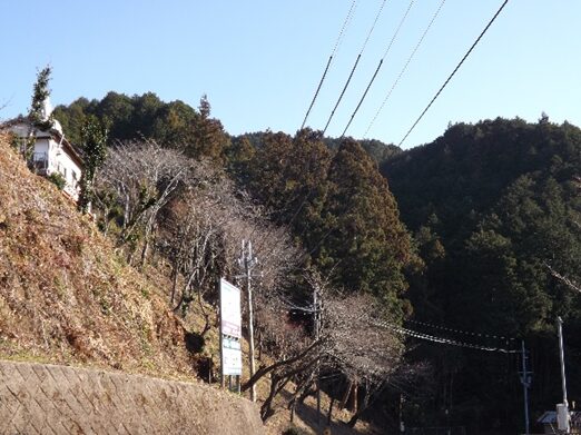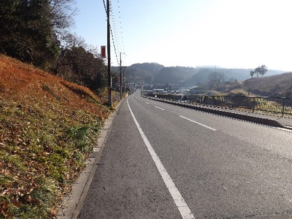 船戸橋を渡り進むと、すぐの先で広い道に出るので左に曲がり暫く坂を登る