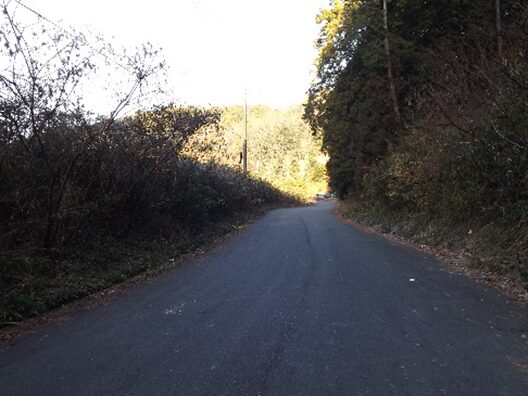 緩やかな坂を下っていく電柱がなければもっと良いのに