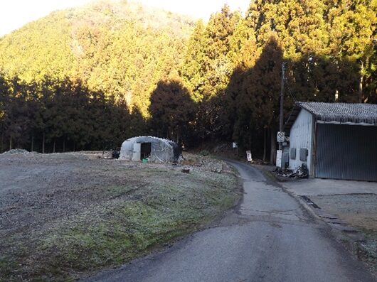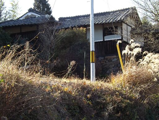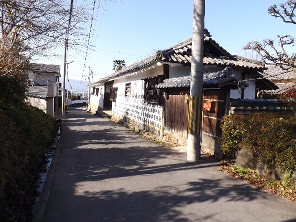 旧道に入り造園屋の前を通り、馬佐地区に入る