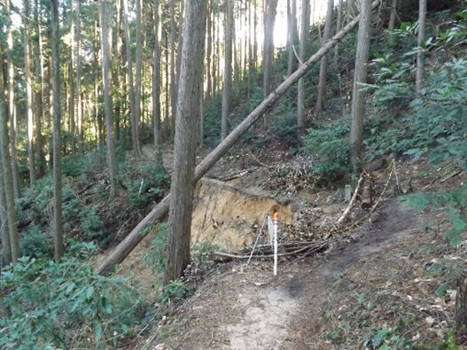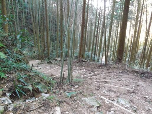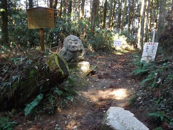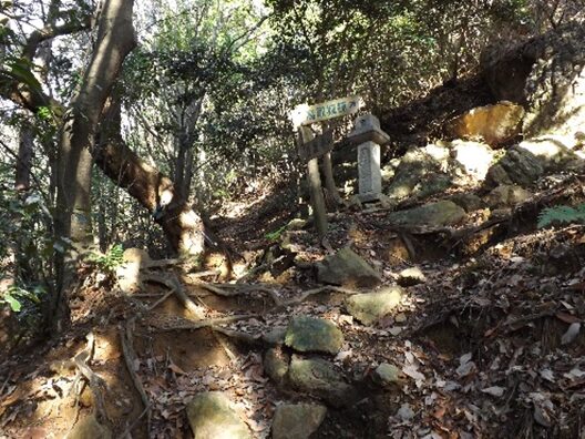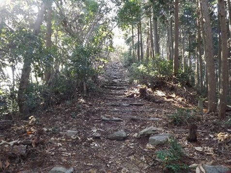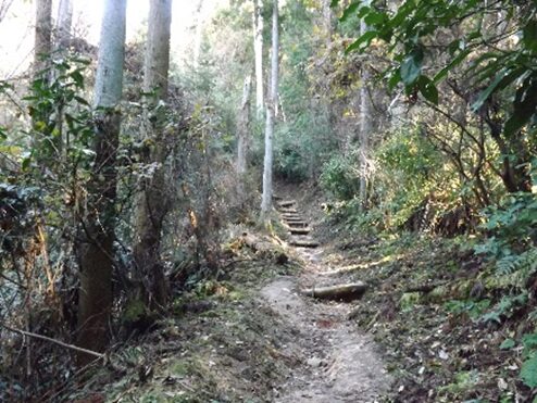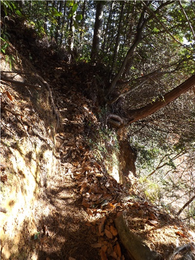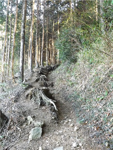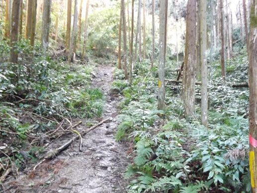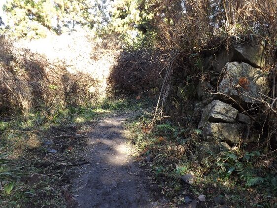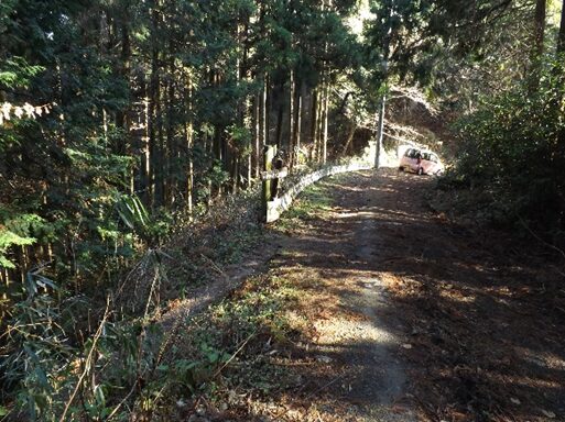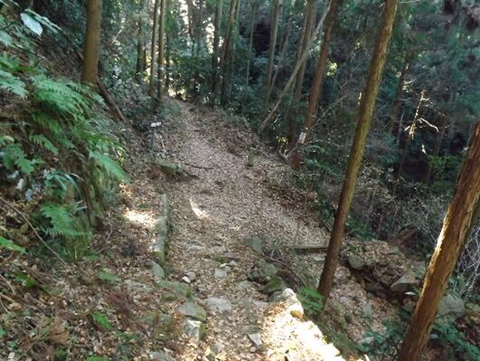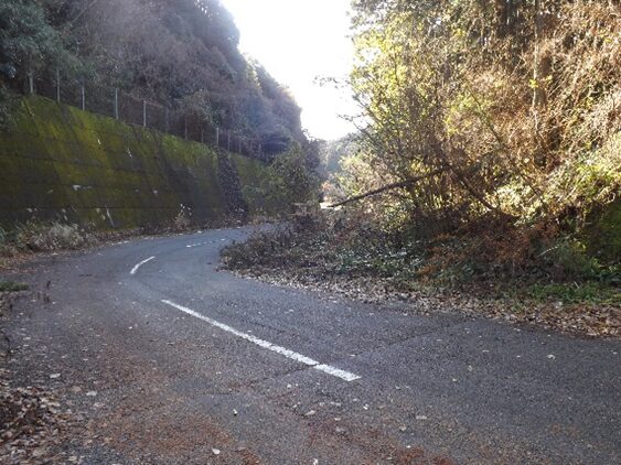 峠から今来た道を振り返るが、この道は何のためにお金をかけて工事をしたのか疑問に思う。もうすでにつっくったときの原型をとどめていない。税金の無駄遣いもいいとこ。それより同じするなら、せっかくの古代からの旧道の整備に力をいれるほうがよっぽどいいと思うが。多分殆どの市民は通っていないから知らないと思う