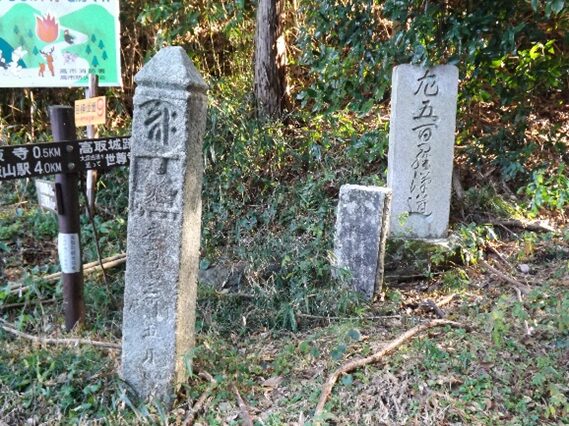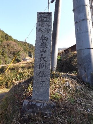 更に登っていけば 長園寺 があるが少し遠いので寄道はしないが、 長園寺の道標 が建っている