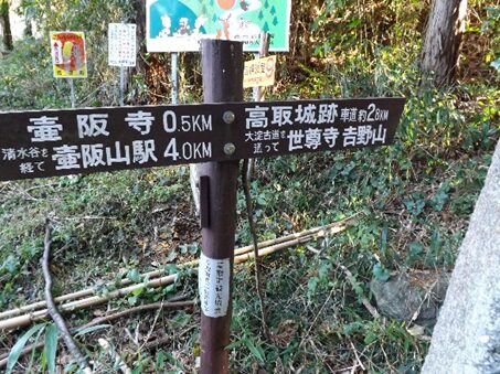 その先で道が分かれるが、お寺を左に見て右に進む。左に行けば馬佐集落を抜けて、国道169号線に出て吉野山へ行ける