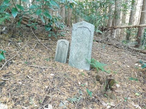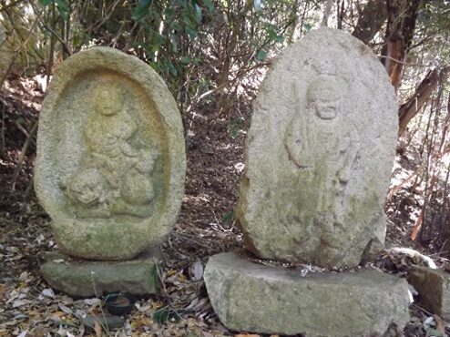 すぐ先左に比曽川を背に石造りの 祠が2つ