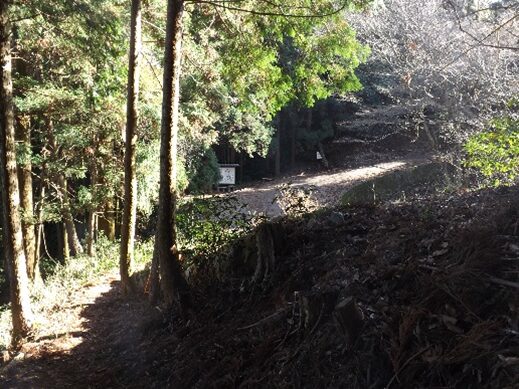 峠を振り返る、右の道を登ってきた。左の道を行けば高取城跡への車道
