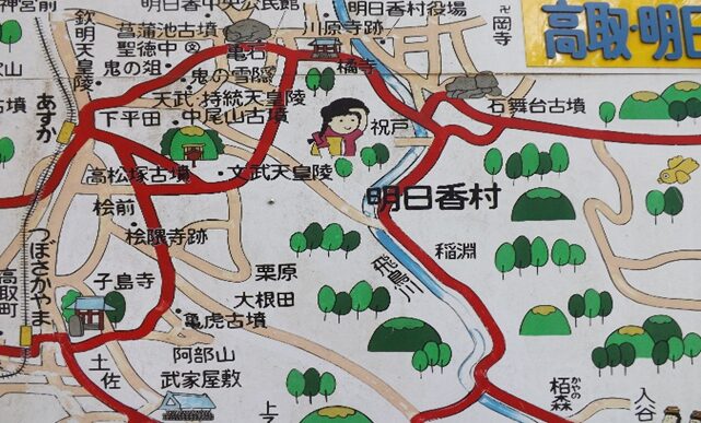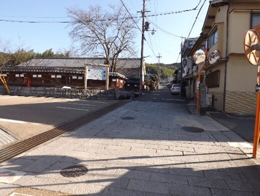 交差点で大手通りを中断して、交差点を左に(東へ)進み、壺阪寺への道を進む