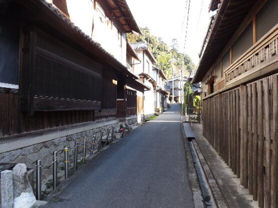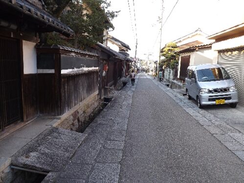 土佐街道の道幅が狭くなり、緩やかな下りが続き、城下町らしい情緒が出てくる