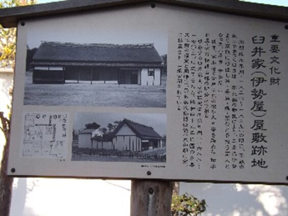 後年、高取藩の公用伝馬の役や大年寄を務めた。伝承、お里・沢市物語由縁の伊勢屋である。現存する臼井家主屋の住宅は1688~1703年に建てられた。昭和49年に国の重要文化財の指定と同時に、奈良県民俗博物館(大和郡山市)に移築されて一般公開されている