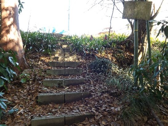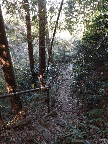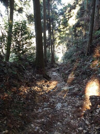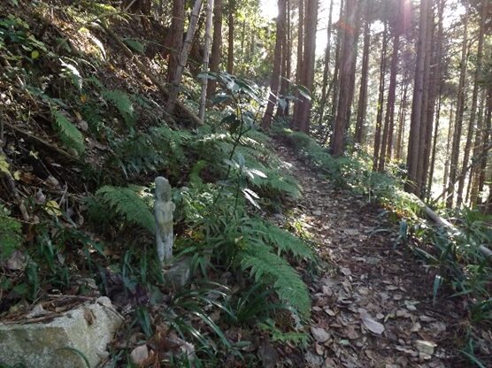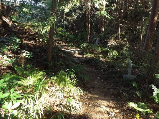 護摩堂の前の道を坪坂寺への峠への山道へ入る