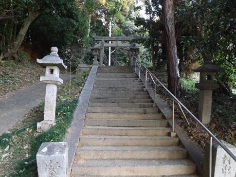 その先左に 高皇産霊神社 の参道がある。参道を少し進み車の多い国道に出ると中街道で渡ると神社に入る
