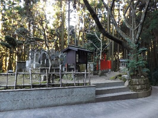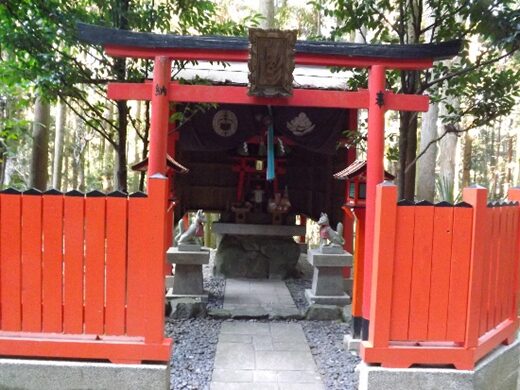 右手に 宮形大明神 が赤い鳥居と高台に祀られている