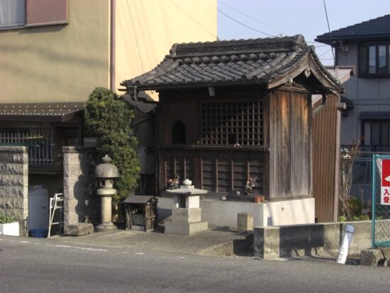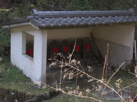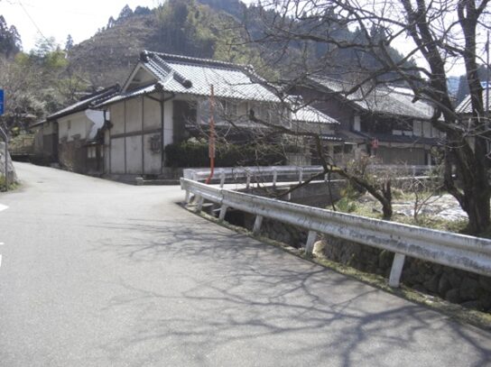 右の川に沿って集落内を進んでいくと金福寺のところで左に曲がるがその右手に