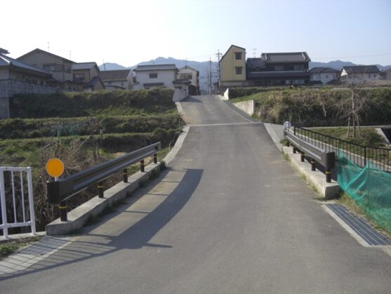 信号交差点の右手に自動車道とは別に人の通る道として 屋形橋 が作られています