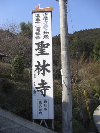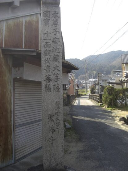 旧家のところで旧道は左に曲がるのだが(寄り道)して聖林寺による。参道入り口左手にある 聖林寺の道標