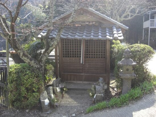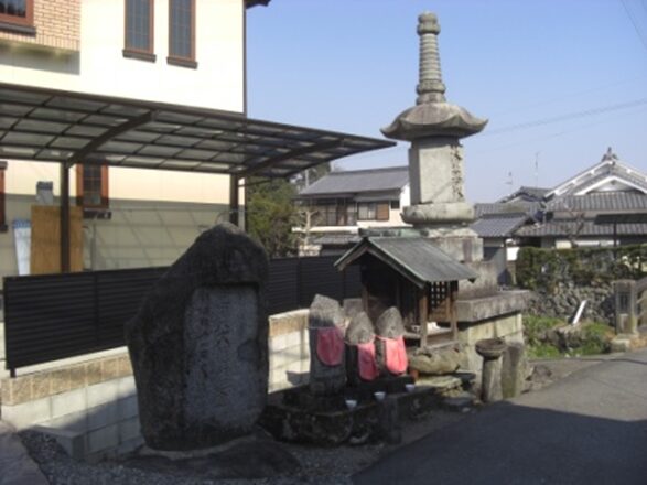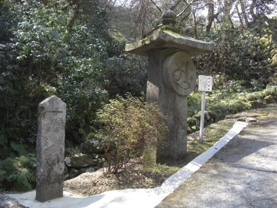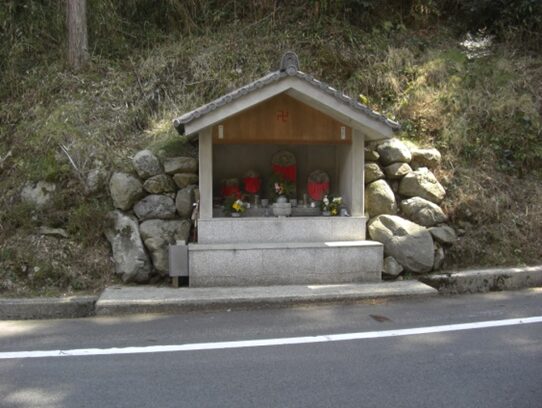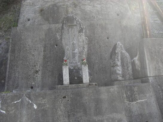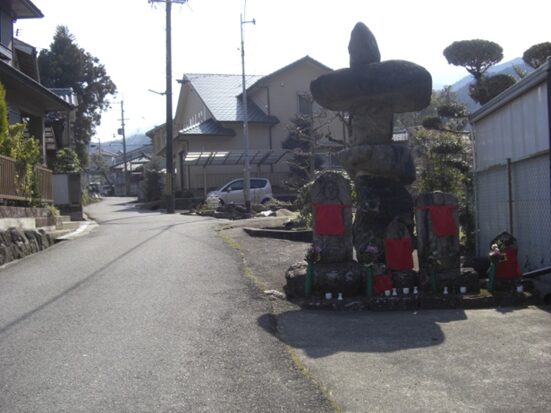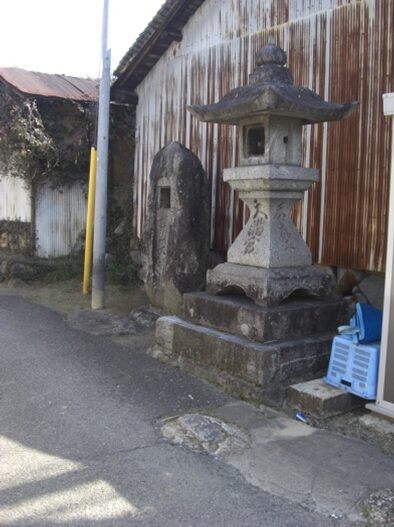 倉橋集落内右手に大きな 灯籠とお地蔵さん が立っています