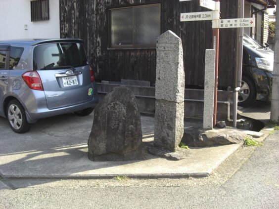 観音寺登り口の橋の袂にある大きな 石碑と道標
